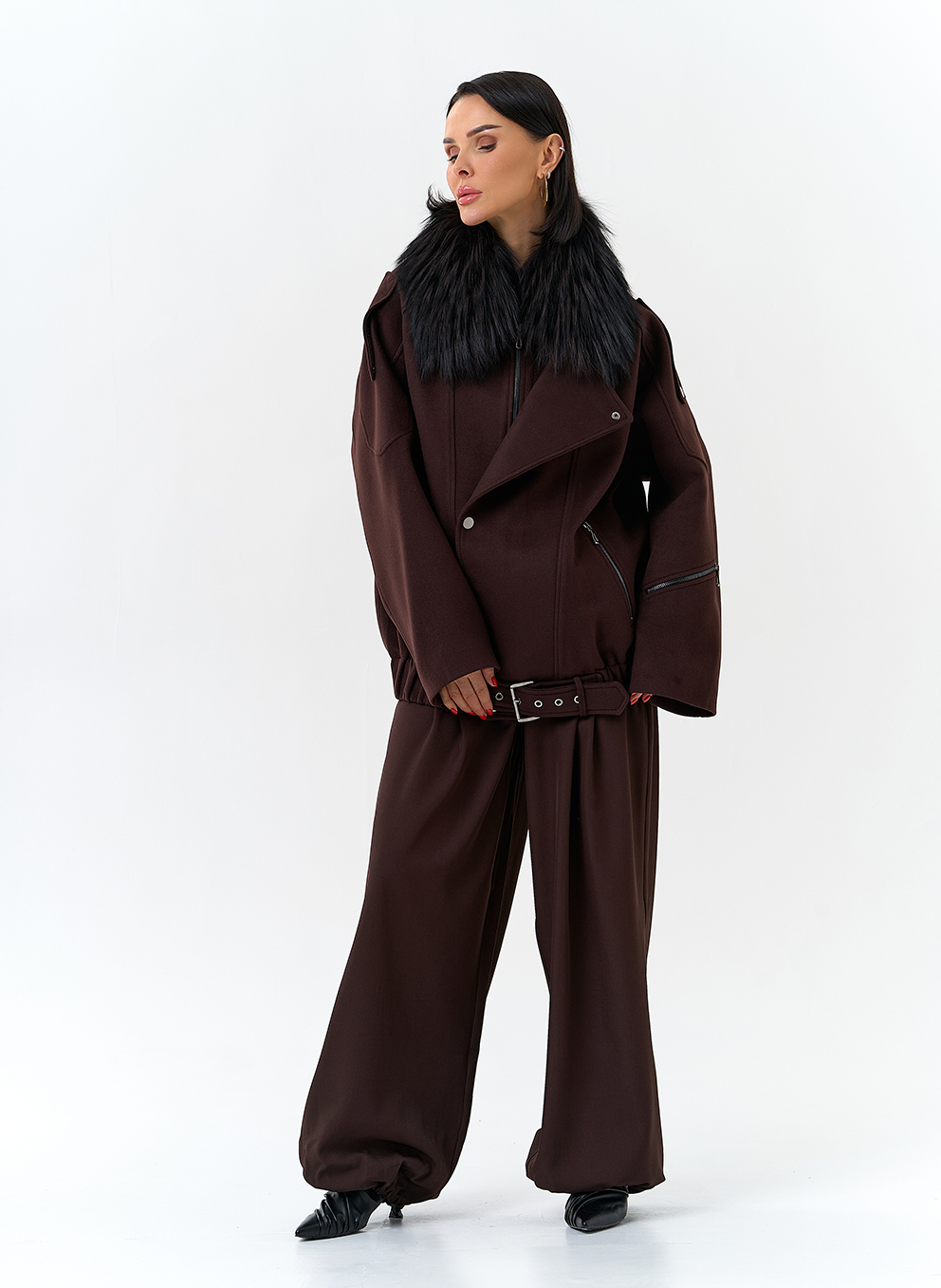 Отделка воротника - съемный мех лисы, цвет черный
