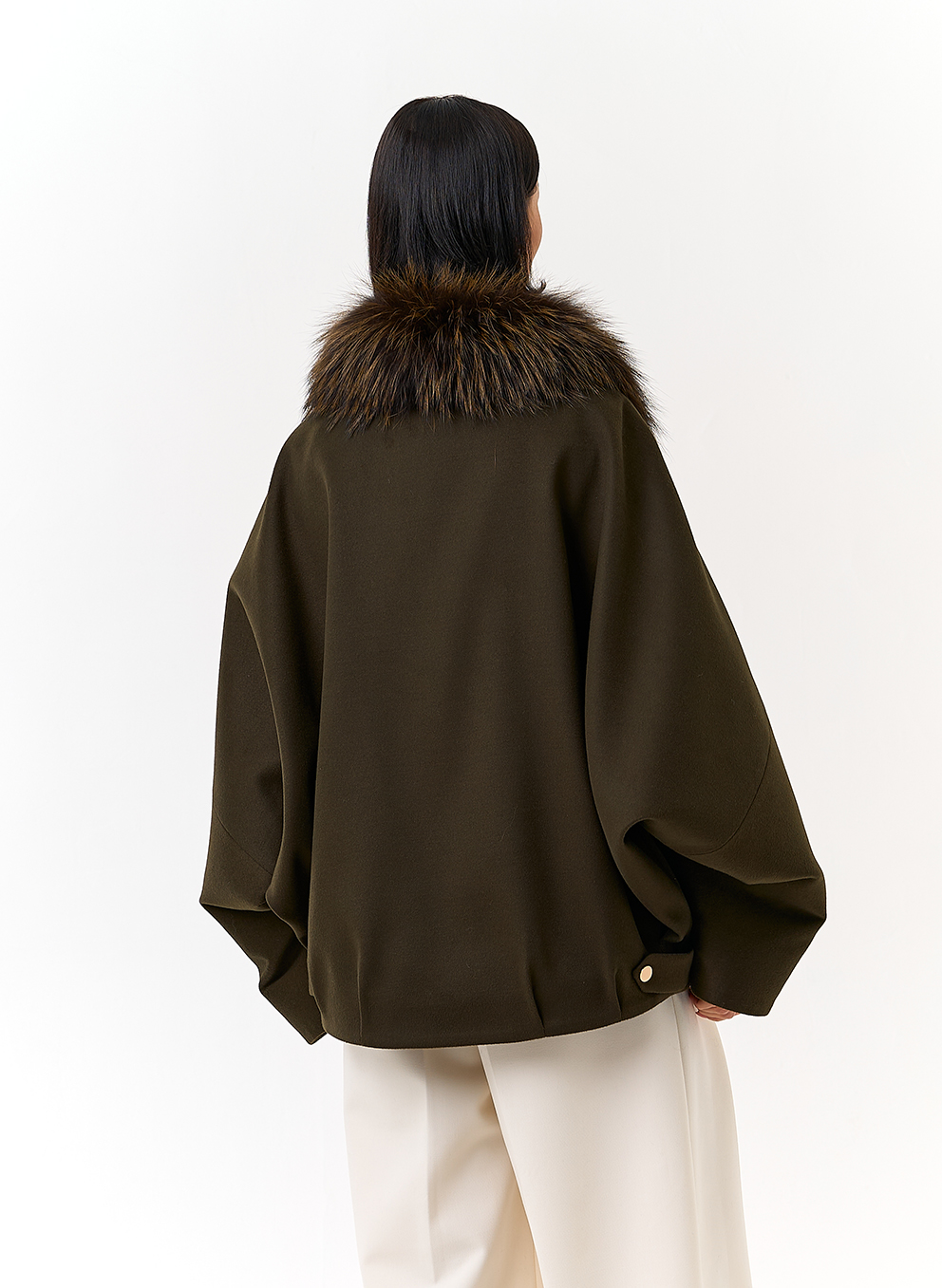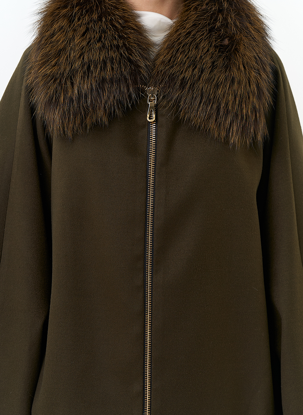 Отделка воротника - мех лисы, цвет зеленый